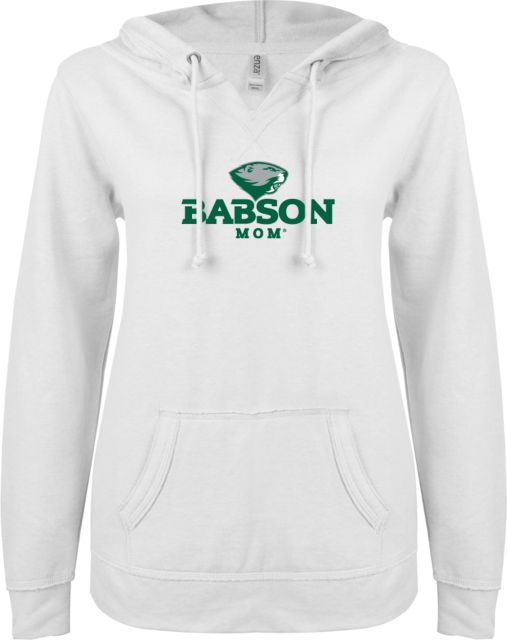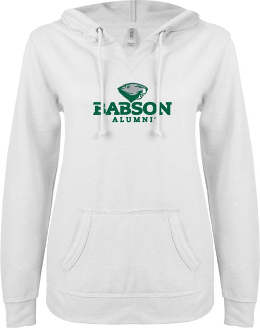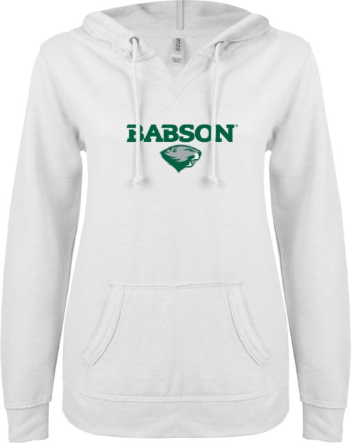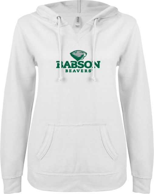 Babson ENZA Ladies V Notch Raw Edge Fleece Hoodie Mascot Design - ONLINE ONLY