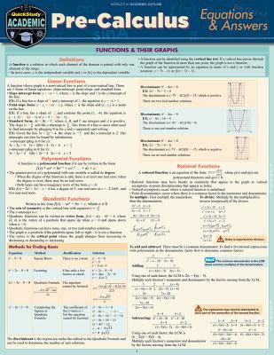 PRE-CALCULUS EQUATIONS & ANSWE