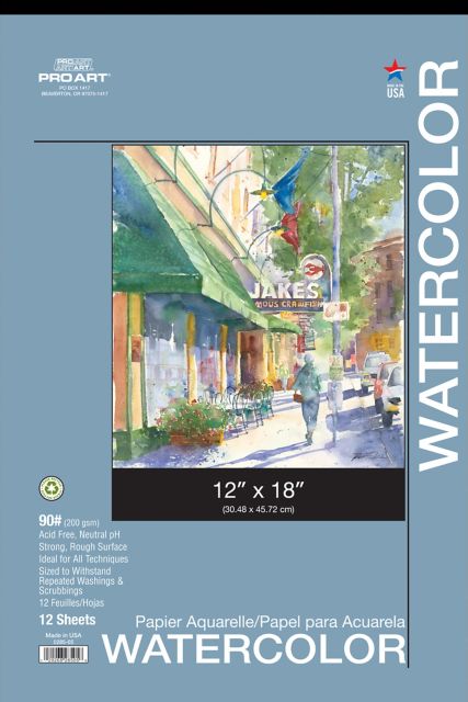 Pro Art 12x18 90 lb Watercolor Paper 12 Sheet Tape Bound pad