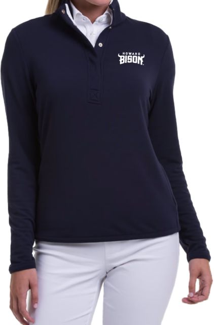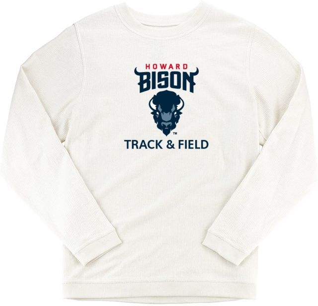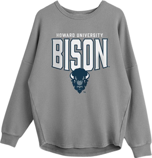 Howard University Women's Crewneck Essential Corded Pullover with Ribbed Knit Cuff Detail