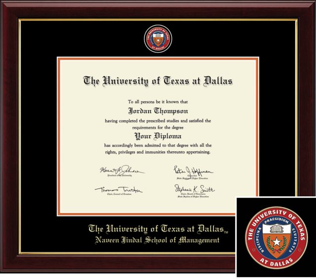 Church Hill Classics Presidential Diploma Frame. Naveen Jindal School of Management - ONLINE ONLY